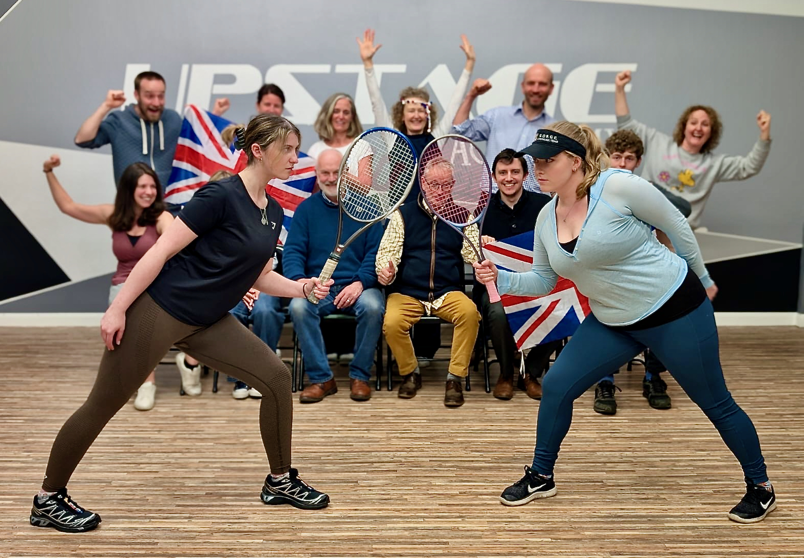 The choreography is varied and draws upon exercise as well as dance routines. Emily says that she was inspired by the potential for tennis racquets for choreography, but she uses many different accessories including giant exercise balls, picnic hampers and blankets. It is not until the finale that tennis racquets really come to the fore. Both of the stars thank their fans for supporting them, and the audience, who had been asked to cheer for different characters at different points in the action, felt we were also being thanked. The musical ends by encouraging us to consider what can unite people in sports despite the competitiveness that divides them.